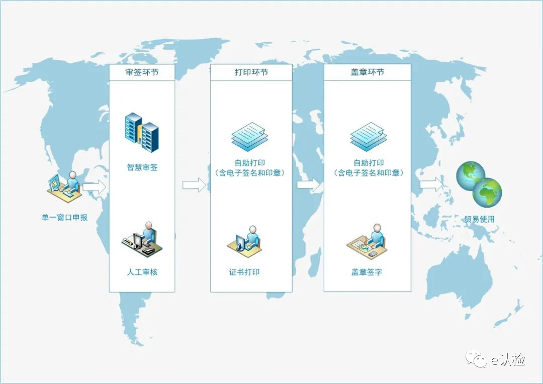自助打印是指各出口企业向海关申报的原产地电子证书经审核后,“足不出户”直接使用彩色打印设备在 A4 纸上自行打印带有底纹、企业签章及签名、海关签章及签名的原产地证书的申领模式。