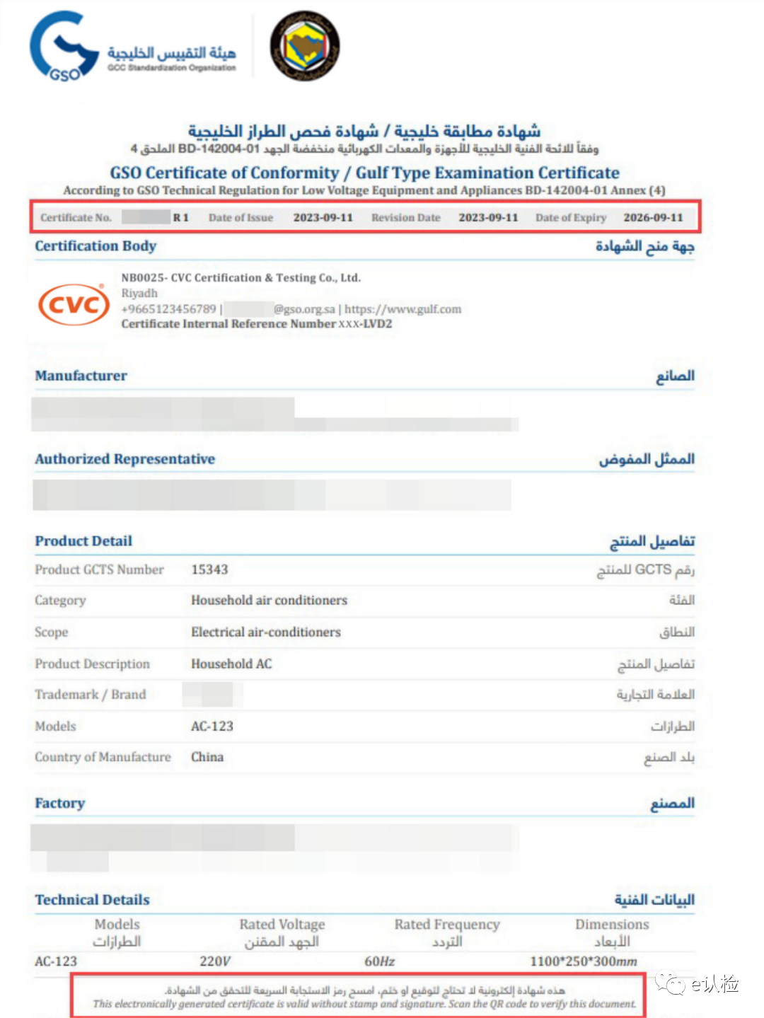 接海湾阿拉伯国家合作委员会标准化组织(GSO)通知,自2023年10月1日起,海湾G-Mark认证证书将采用统一的电子证书模板,由认证机构在海湾符合性追溯标志注册系统注册后生成。自2023年12月30日起,认证机构将不再使用机构原有证书模板签发证书。