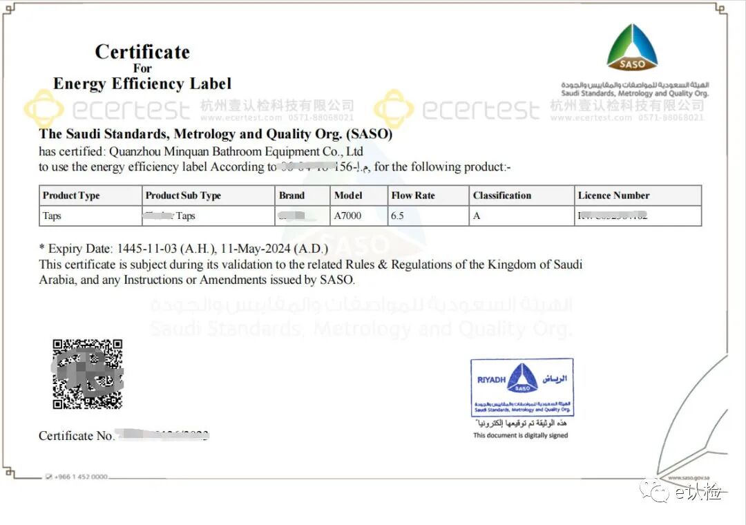 沙特《水效技术规范》:水效产品海关税率和相关认证要求