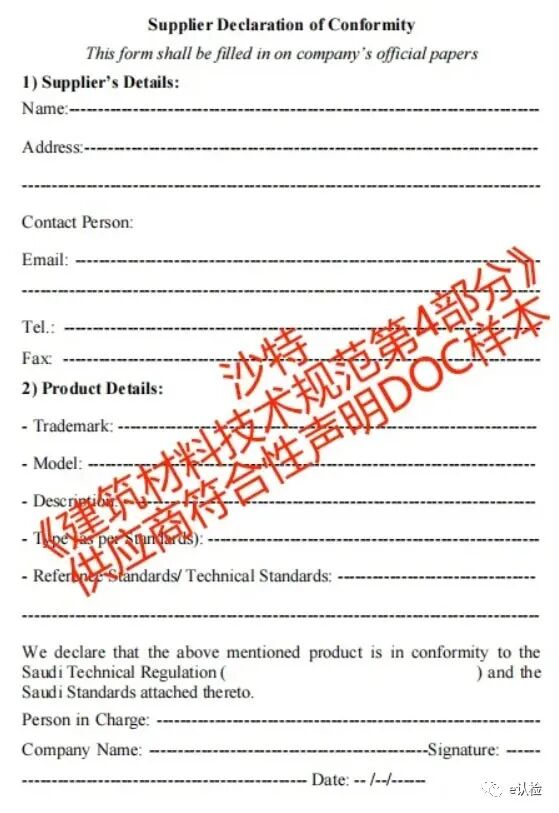 除了COC证书,供应商还需要提交DOC(供应商符合性声明),如下图: