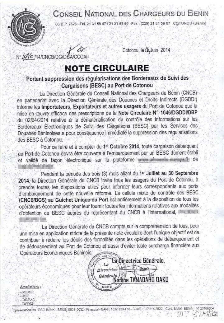● 根据贝宁海关规定,所有来自贝宁的货物必须附有BESC证书;