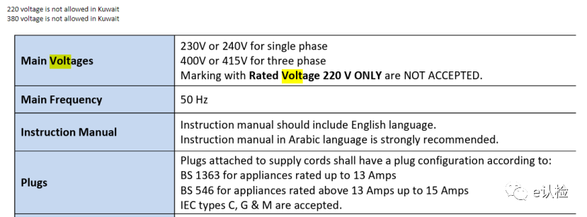 科威特接受电压:
